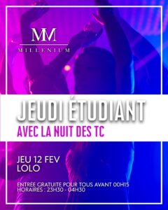 Ambiance généraliste et actuelle au Millenium Club Lisieux, la référence boîte de nuit Normandie pour sortir entre amis ! Une soirée Lisieux festive avec offres spéciales et dancefloor en ébullition dans le meilleur club Normandie. 🎉 Entrée gratuite avant 01H15 avec la carte