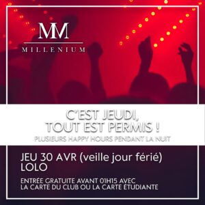 Toute l’équipe du MilléniuM est à votre service pour que vos soirées soit parfaites ! Faites de vos soirées un véritable événement : enterrements de vie de jeune fille ou garçon, anniversaire, soirée privée… Contactez-nous pour une réponse sur mesure.